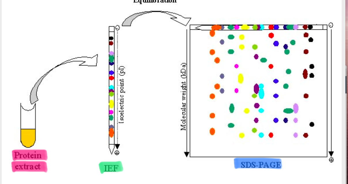 Isoelektrisk fokusering -> gelen läggs i en SDS-page->SDS page