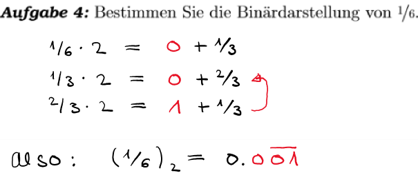 Nachkommastellen wiederholen sich periodisch –> Darstellung als Brüche