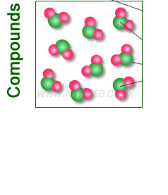 Two particles of different elements that are not stuck together or could be a mixture of two different compounds or an element and a compound.