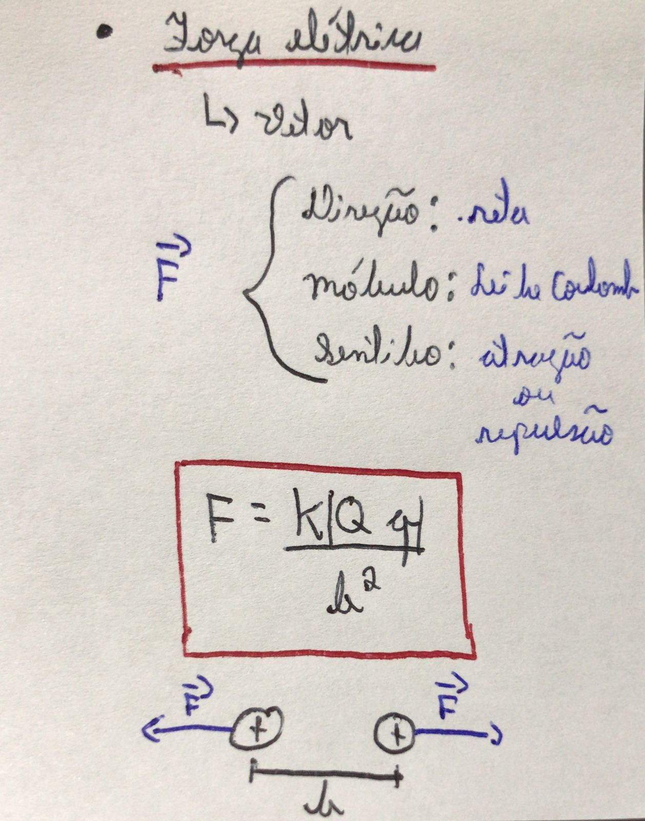Qual a fórmula da força elétrica de um corpo ?