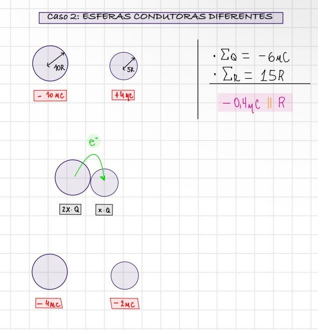 Nesse caso, no qual temos dois corpos de tamanho distinto, como ficarão as cargas de cada corpo?