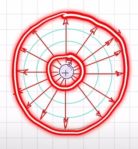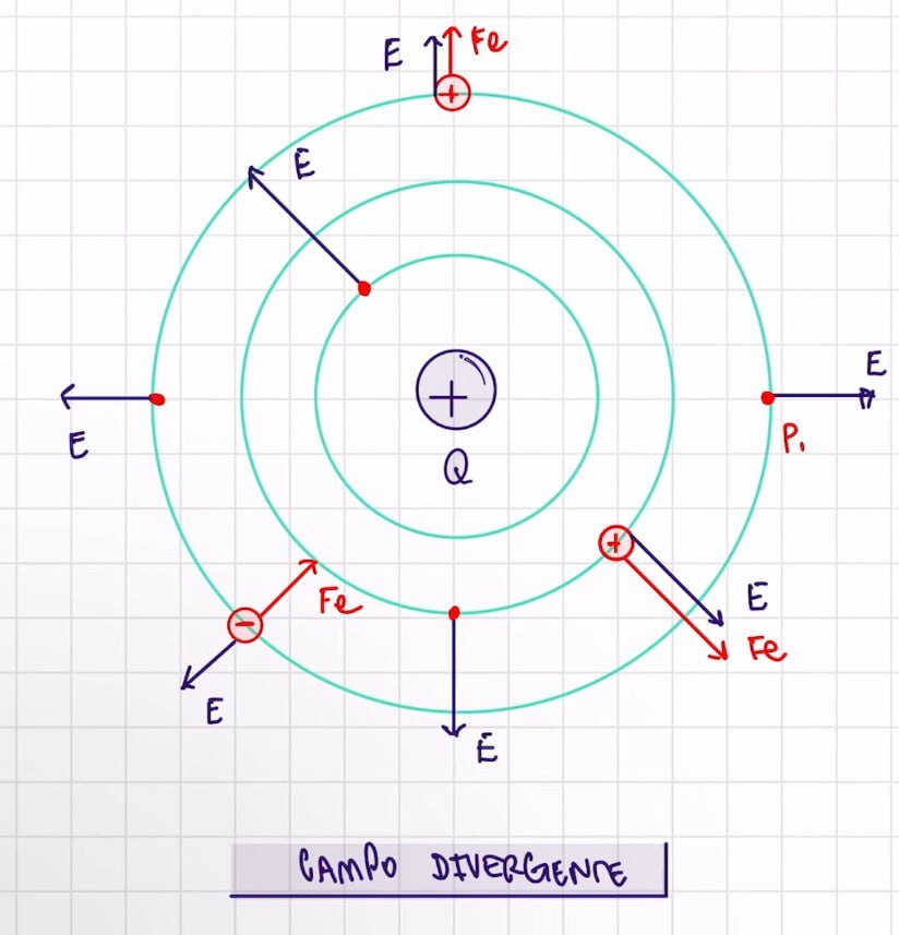 Em um campo divergente gerado por uma partícula positiva o vetor campo sempre será oposto a carga do campo.