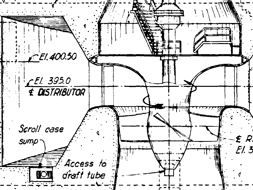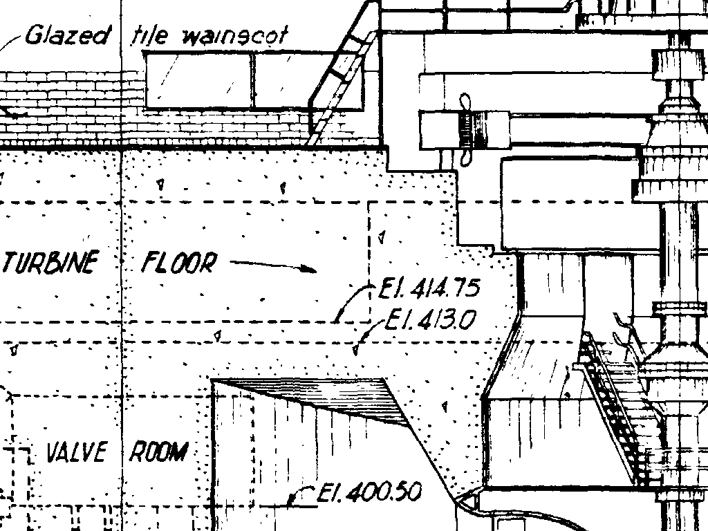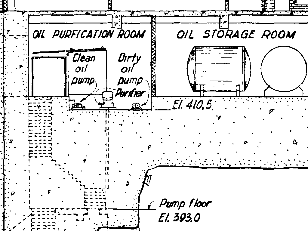 414.75 Generator cooling water pump Unwatering pumps Governor oil accumulator tank Generator emergency cooling water pump Governor oil pump and sump Deluge fire pump Access to elev 428