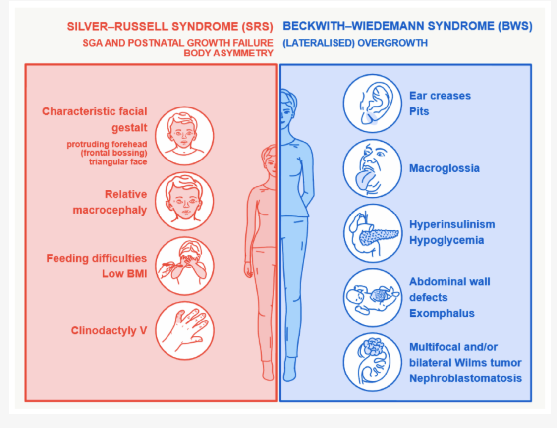 Common to find associated conditions: trisomies, Beckwith-Weidemann syndrome