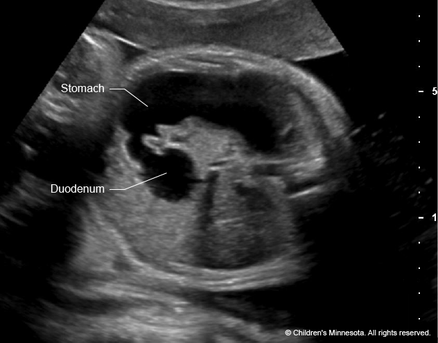 Commonly duodenal atresia