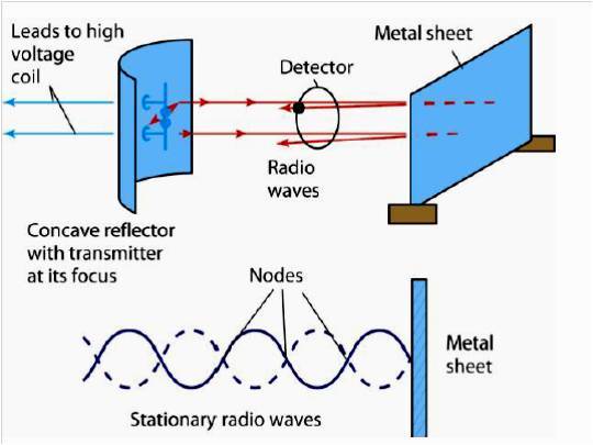 Hertz was able to create a stationary radio wave from the superposition of the incident and reflected waves