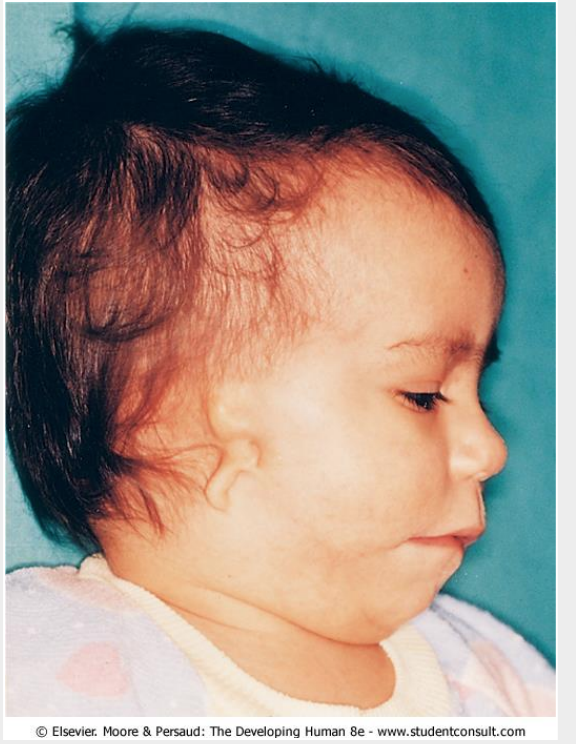 What fails to happen leading to no ear at all and no external auditory meatus?