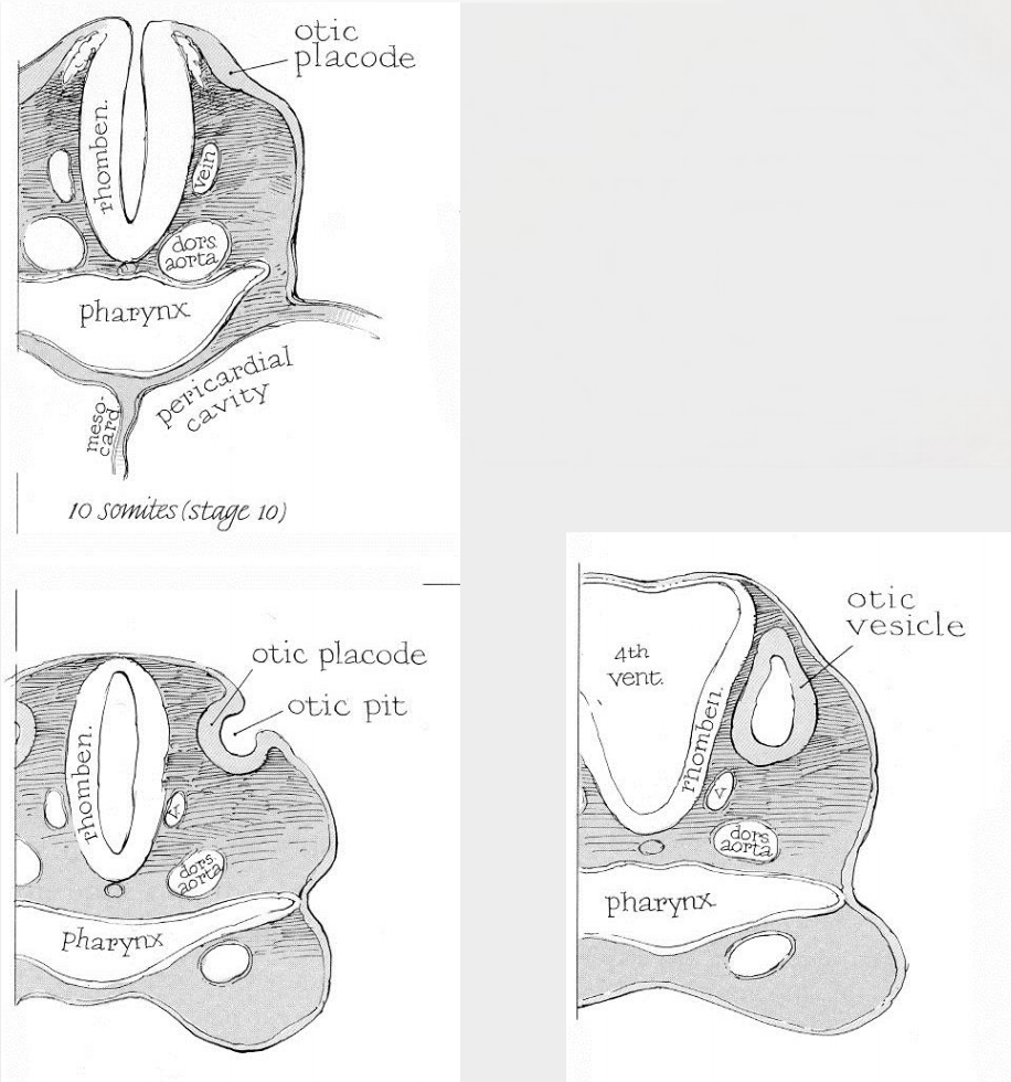 Otic placode –> Otic pit –> Otic vesicle –> membranous labyrinth