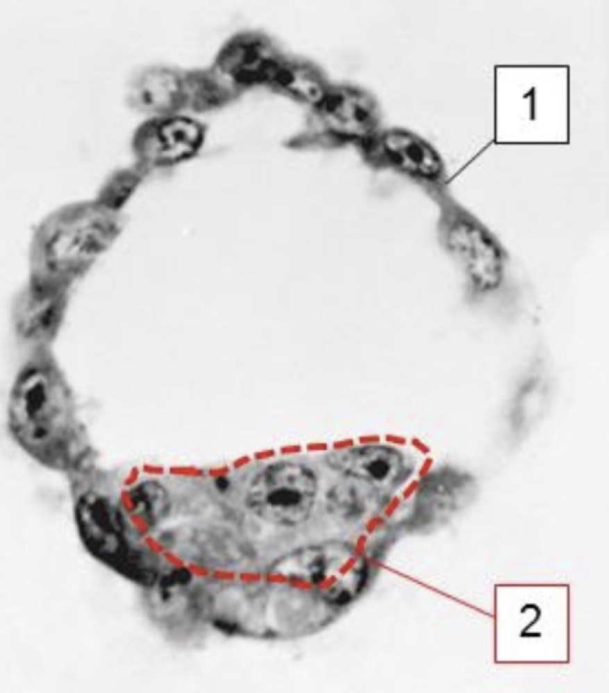 Het vindt plaats in een gespecialiseerde structuur van het schijfvormige emvryo. Wat is de naam van dit gebied?