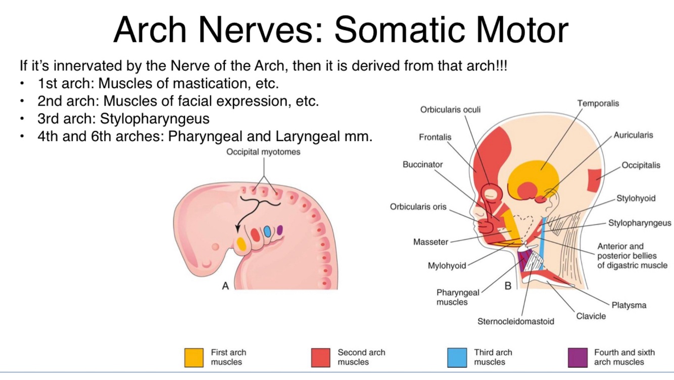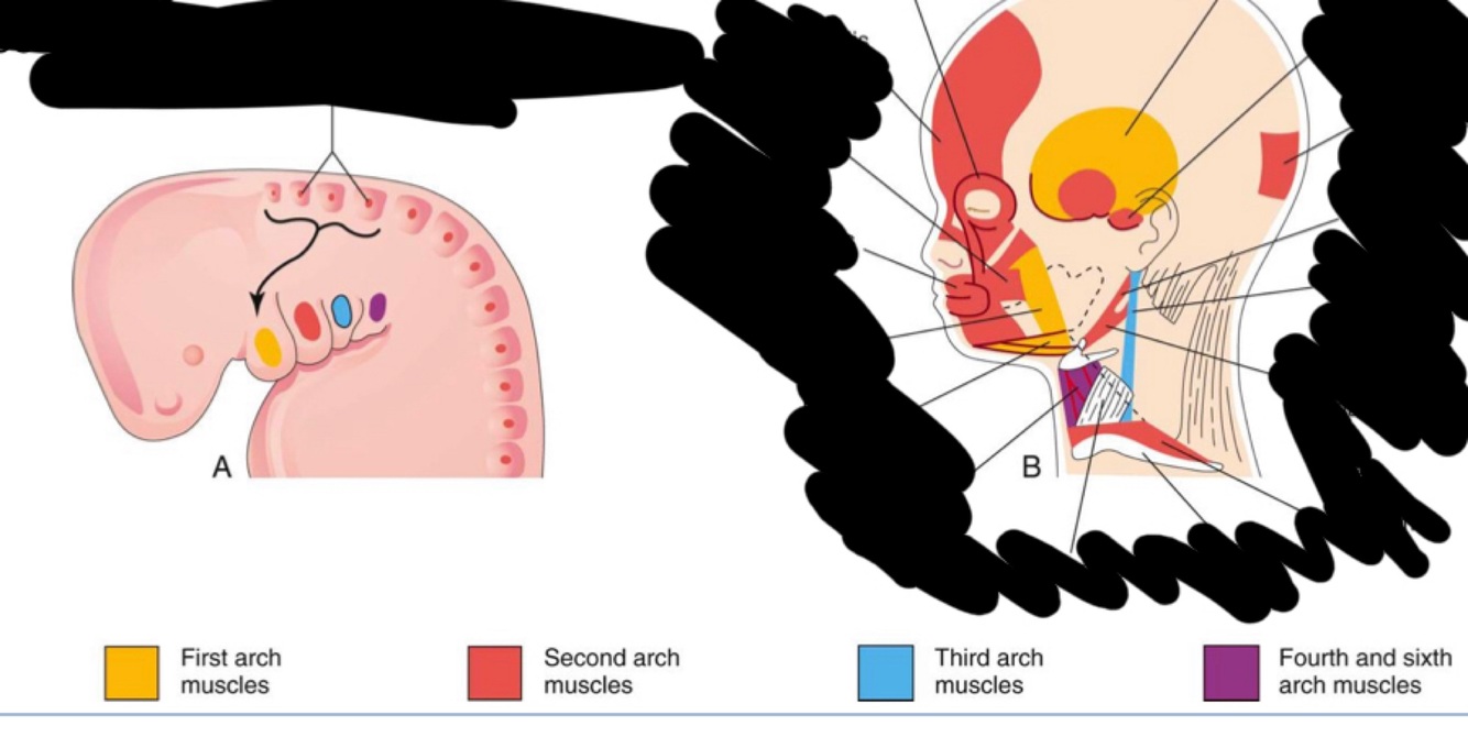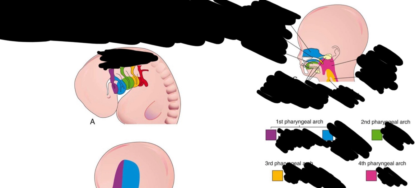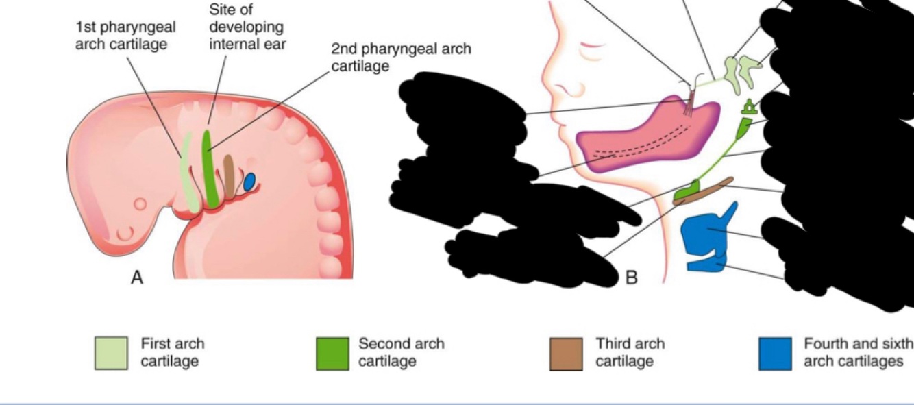 Pharyngeal arch syndrome: occasionally the cartilages and other derivatives that degrade under normal developmental patterns fail, resulting in congenital abnormalities of the eyes, ears, mandible and palate, generally due to insufficient migration of neural crest cells into the arches during the 4th week
