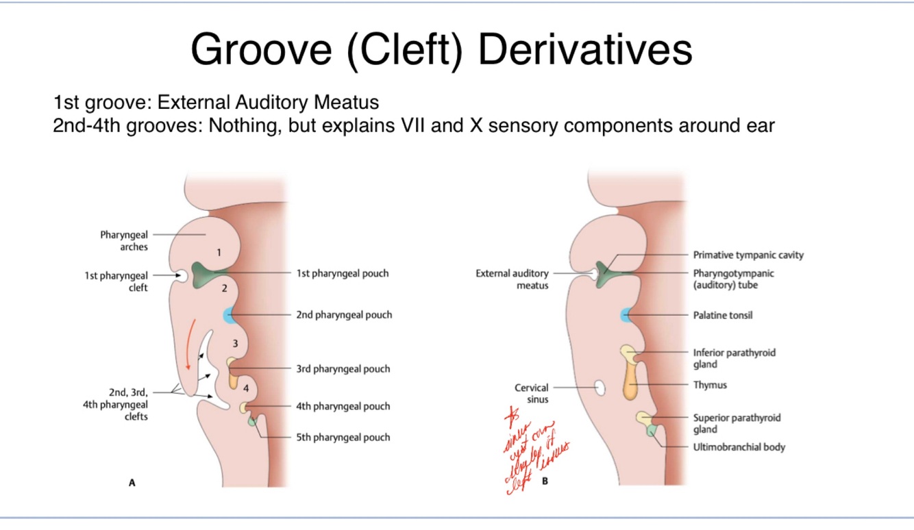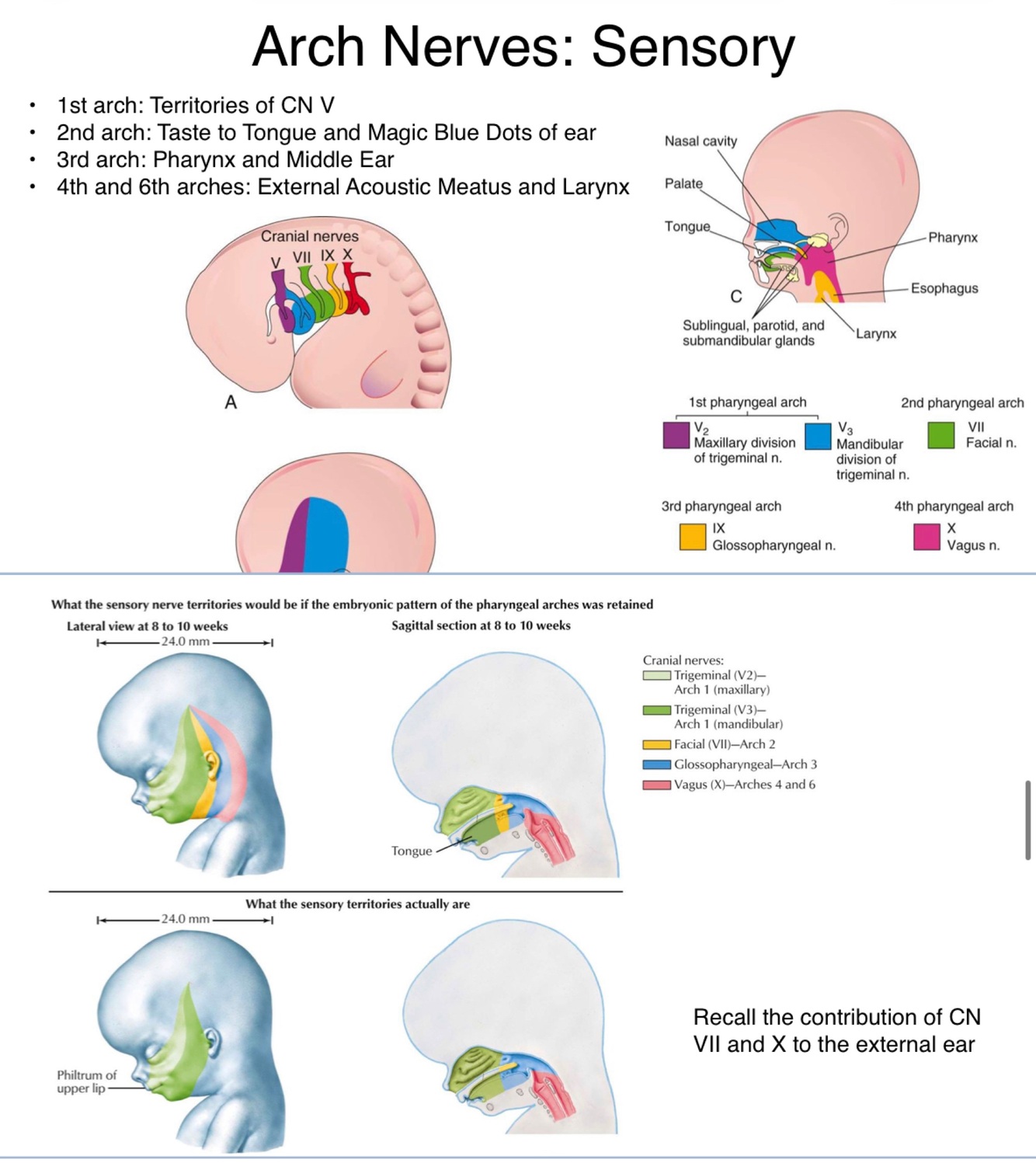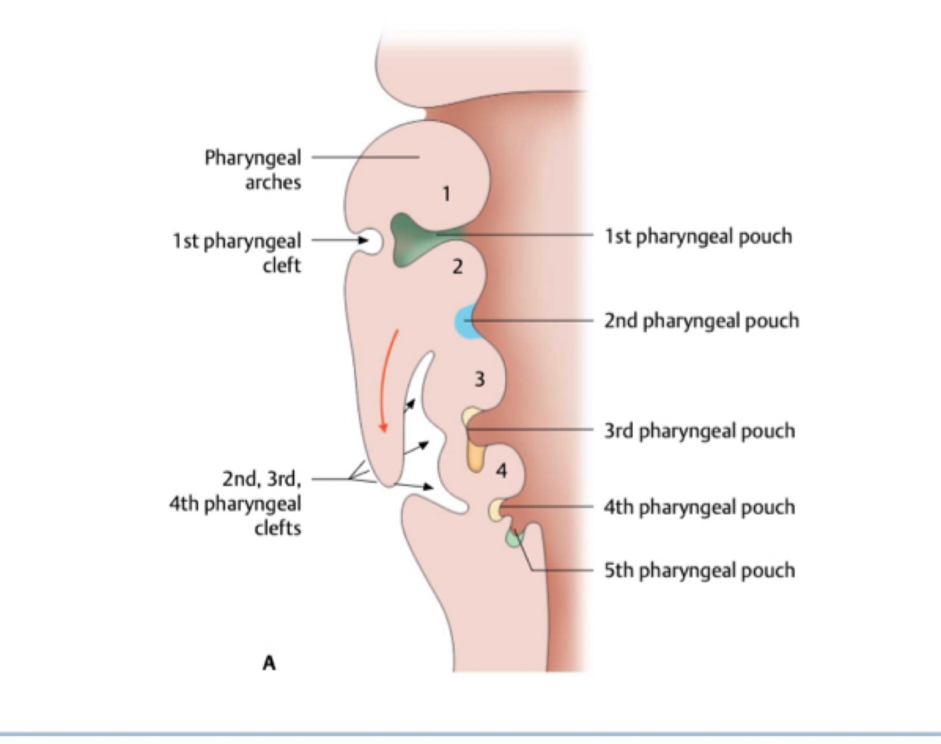 Pharyngeal arch syndrome: occasionally the cartilages and other derivatives that degrade under normal developmental patterns fail, resulting in congenital abnormalities of the eyes, ears, mandible and palate, generally due to insufficient migration of neural crest cells into the arches during the 4th week