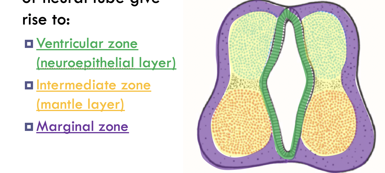 Marginal zone, contains nerve fibers (axons) of the neuroblastsof the intermediate layer and glial cells