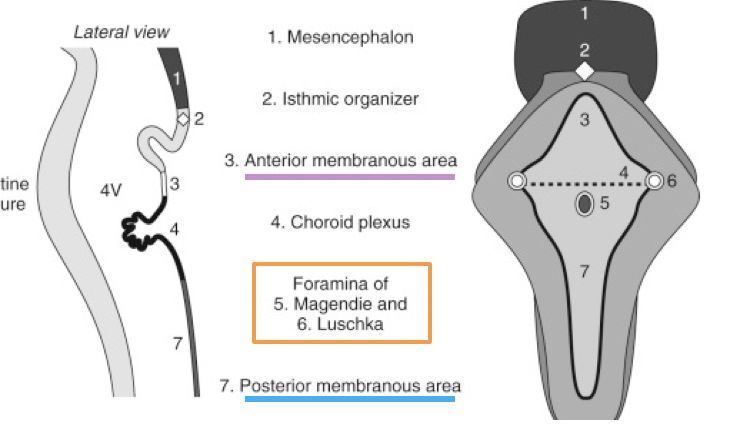 Divisions of roof of 4th ventricle