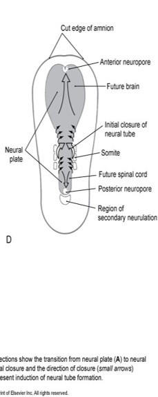At about day 24 we have a tube that is open on both ends. Our CNS is not open at both ends, the brain is not open, and the spinal cords not open. At day 24 the ______ and the _______have to close. If those structures do not close, we start running into congenital disorders.