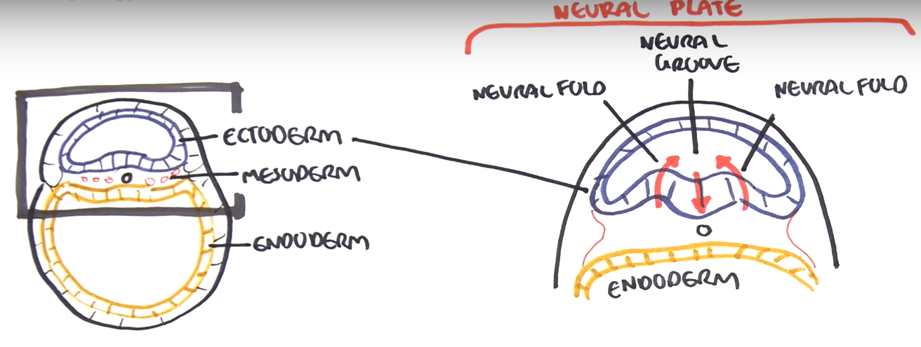 The lateral edges of the ectoderm become more elevated and will form the neural fold.