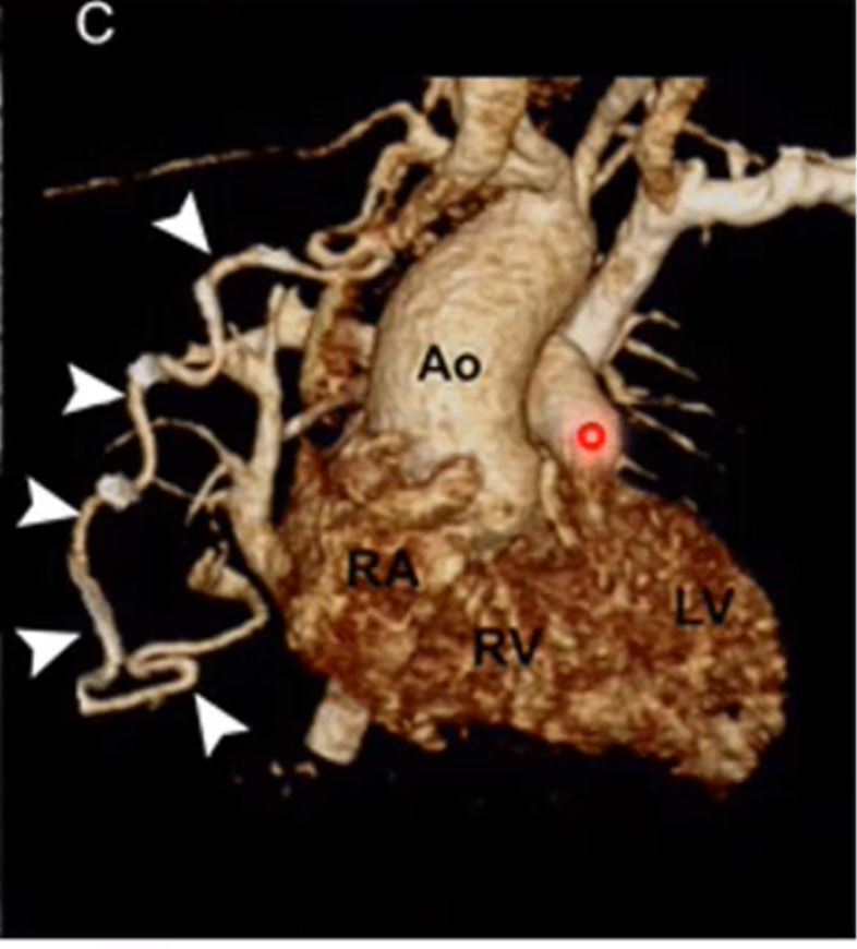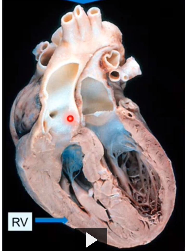 aorta comes of right ventricle and pulm trunk comes off lv. blood just goes roudn the body and is never oxygenated because ivc and svc drain back into the right