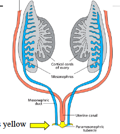 orange: Paramesonephric duct /Műllerian duct, responsible for female development