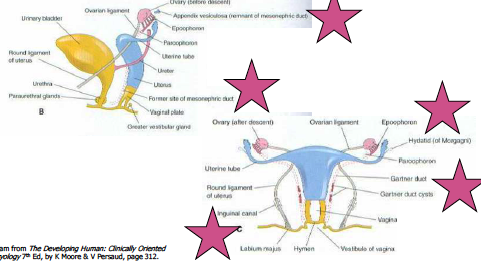 Gartner’s duct: Runs parallel to uterus & vagina inside of broad ligament