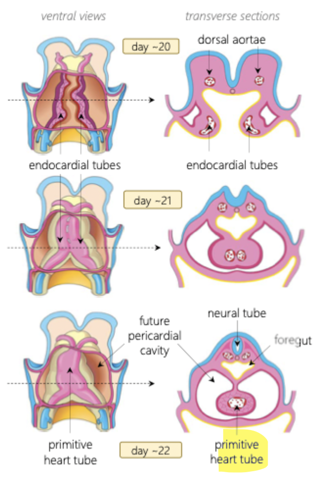 1) fusion of the L/R endocardial tubes into a primary heart tube