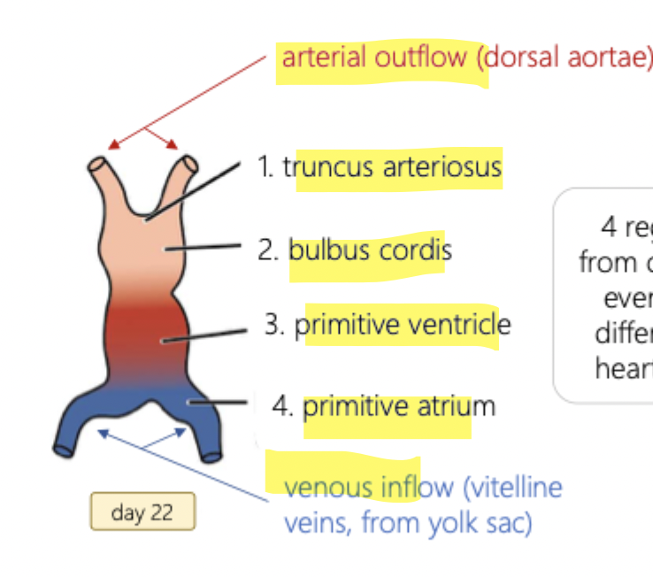 What are the 4 steps in heart deveolopment?