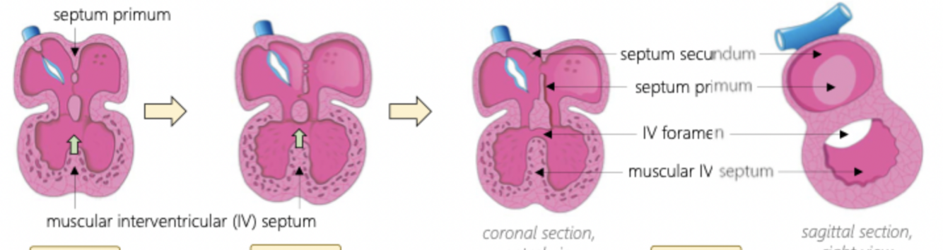 3) septation of ventricles
