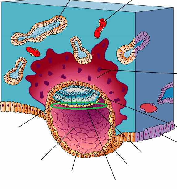 roof of the exocoelomic cavity (was the blastocyst cavity), and is continuous with the exocoelomic membrane. Lower level of bilaminar disc