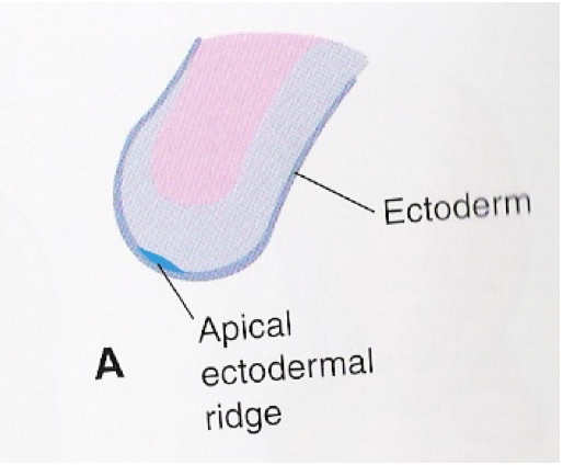 At the apex of each bud - the ectoderm thickens to form an A__pical Ectodermal Ridge (AER__)