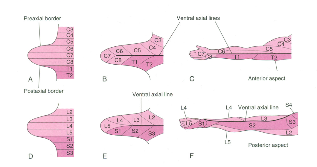 The dermatomes on the limb bud (on diagram) are kinda taken entirely with the limb as it grows