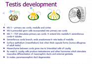 Germ cells migrate from the yolk sac, via dorsal mesentery and embed into primitive sex cords (these are formed from proliferation of the epithelium in each Genital ridge)