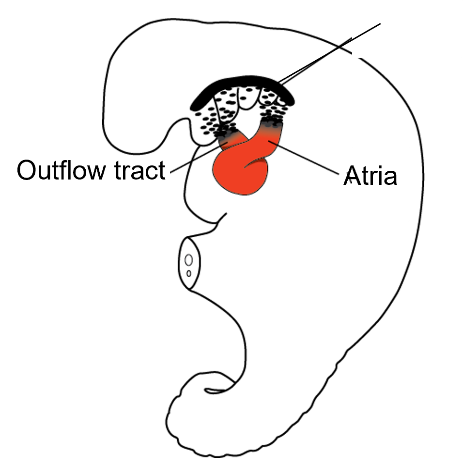 Cardiac looping (looping begins at ~28 days and typical heart established at 4.5 wks)