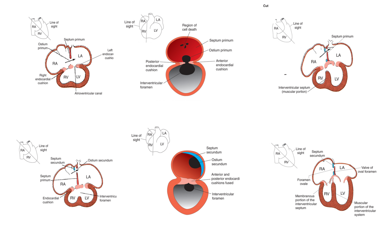 Programmed cell death creates the ostium secundum to create blood flow between the right and left atria.