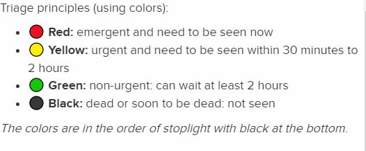 What are some examples of the triage principle of 🔴 Red or 1 & 2?