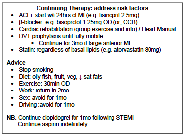 What is the continuing therapy for STEMI?