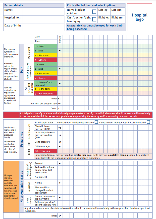 early signs: severe deep pain (unless pt had anaesthetic nerve block/epidural)/ swelling / tense muscle compartment / parasthesias