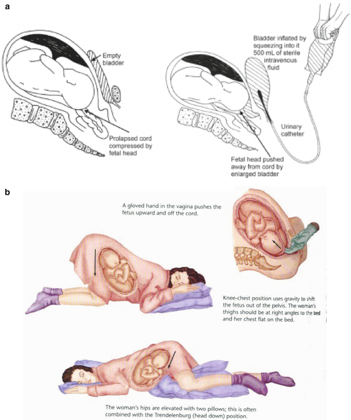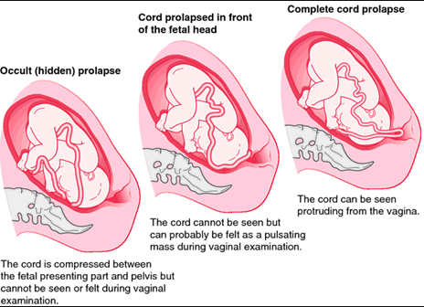 FUNIC: decision between C-sec. prior to membrane rupture OR ARM (artificial membrane rupture) + prep C-section (in case cord becomes overt