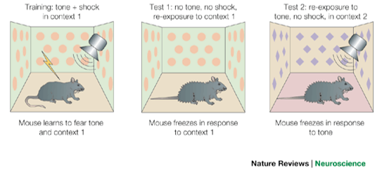 For this, it’s important to remember the concept of associativity in long-term potentiation. Here, a weak stimulus (e.g.) the tone is paired with a strong stimulus (e.g. a shock). This creates plasticity in term of long-term potentiation, where the weak stimulus is associated with the strong stimulus.