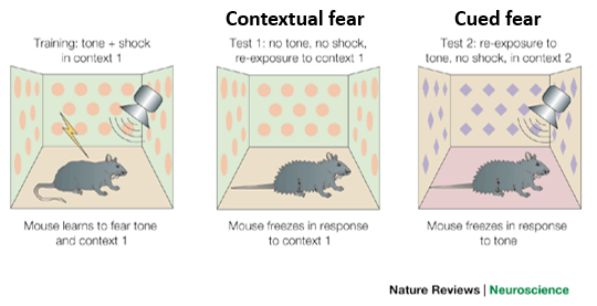During fear conditioning, you can train a mouse so that is displays contextual fear or cued fear. What is the difference between the two?