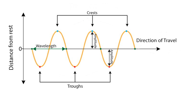 The distance between two points, at the same phase, in consecutive cycles of a waveform.