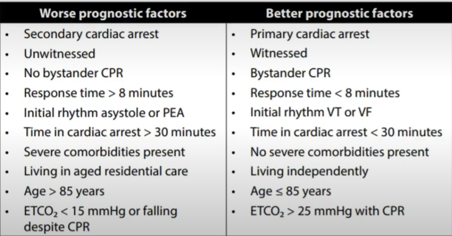 What are the differenced in cardiac arrest prognosis