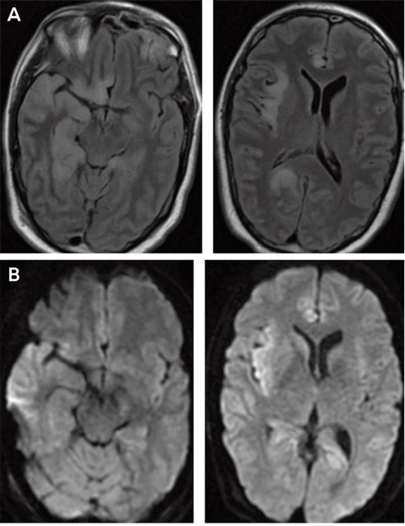 RMN: Edema temporal o frontal, involucro bilateral temporal casi patognomónico