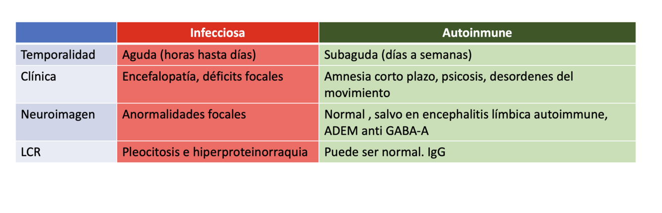 Diferencias entre Encefalitis autoinmune e infecciosa