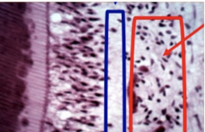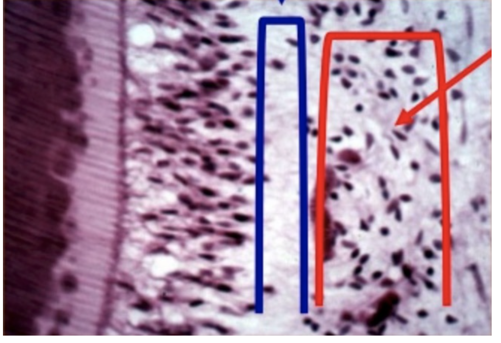 Odontoblastic layer: where nuclei are laying down dentin