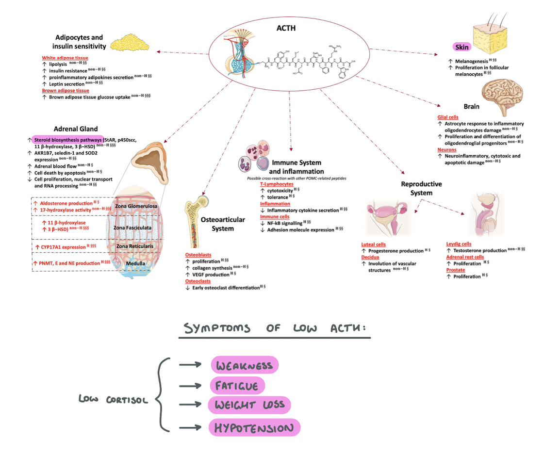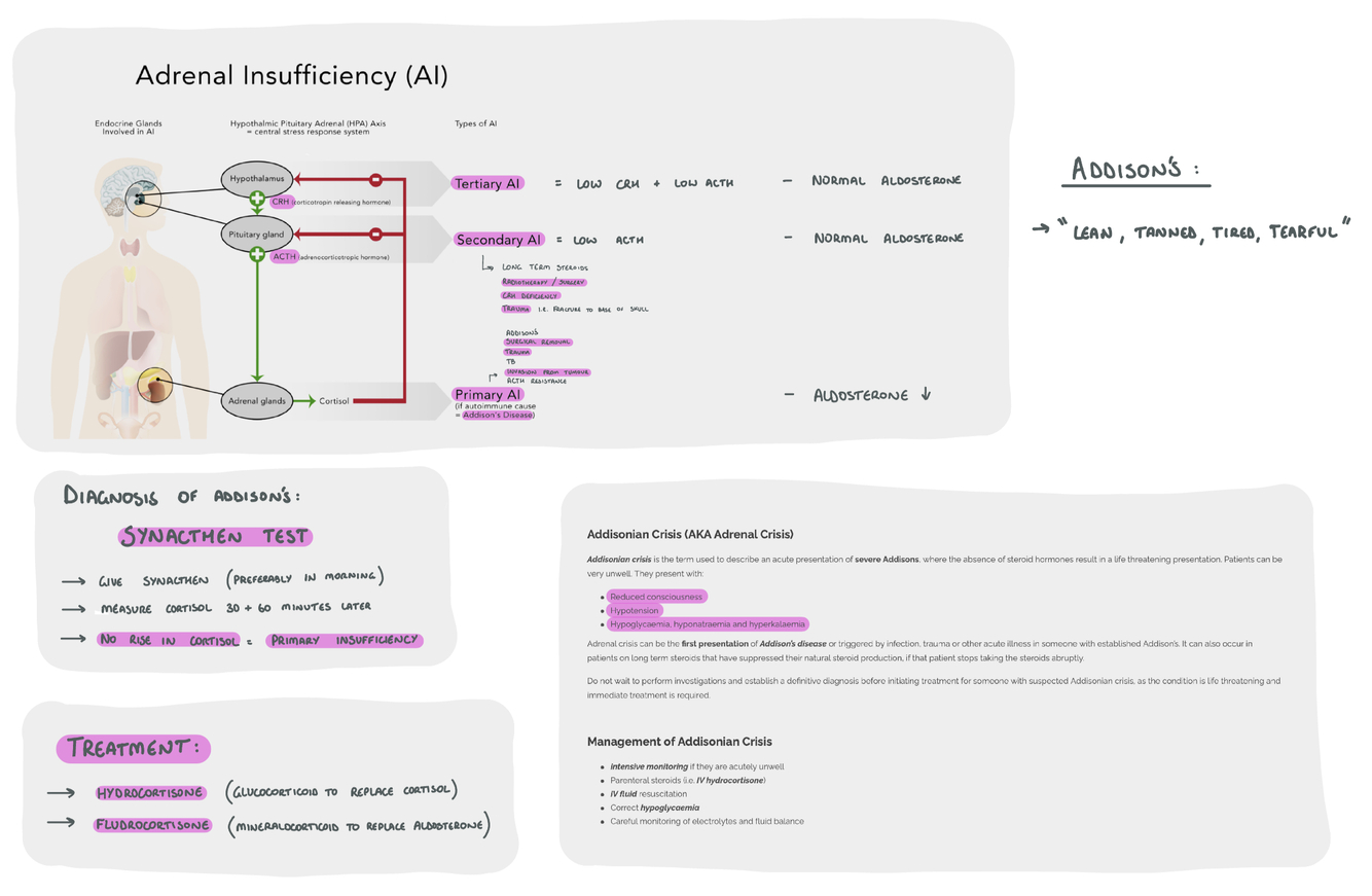 What hormones are low in secondary and tertiary adrenal insufficiency?