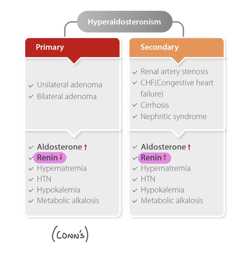 What levels of aldosterone do you see in primary, secondary and tertiary adrenal insufficiency?