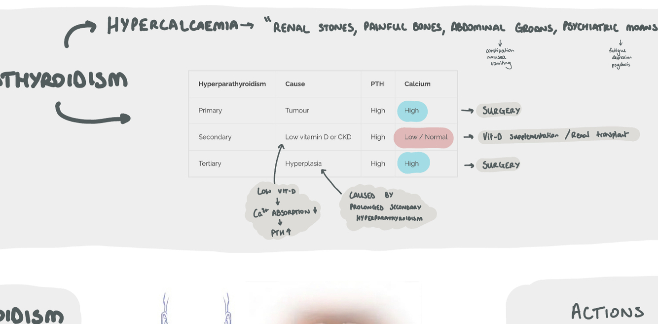 What are the causes of primary, secondary and tertiary hyperparathyroidism?