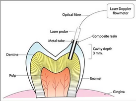 involves passing light through the tooth into the pulp using a probe. The received output signal is then measured to determine the vitality of the pulp.