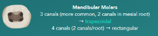 mandibular molars are more square/rectangular-shaped due to them only having 2 roots, so their access preps will be somewhat square/rectangular