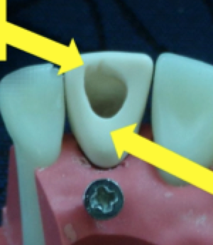 Cause: Excessive removal of tooth structure on one of the marginal ridges. Not accurately locating the cingulum notch