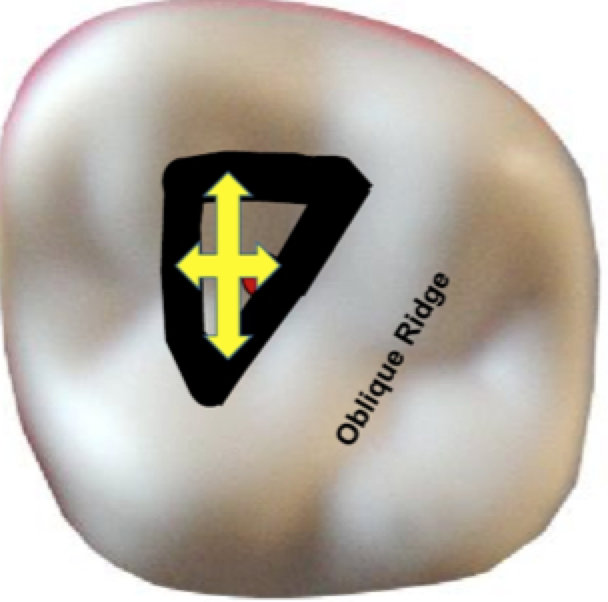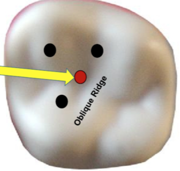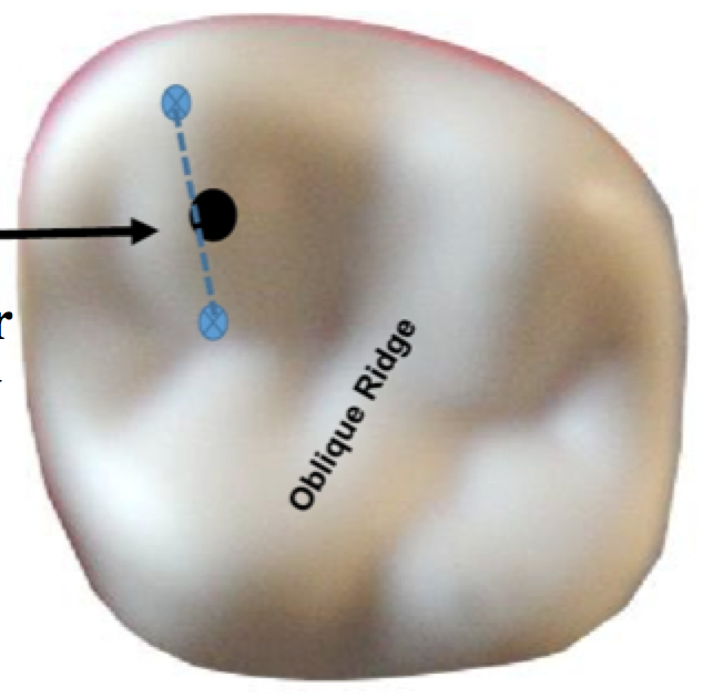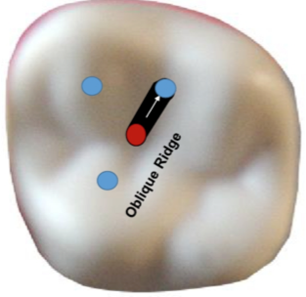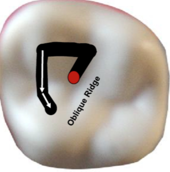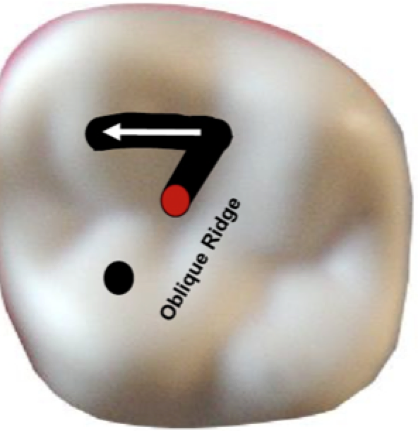 Connect the P dot to the initial penetration point- DO NOT impinge on the ooblique ridge