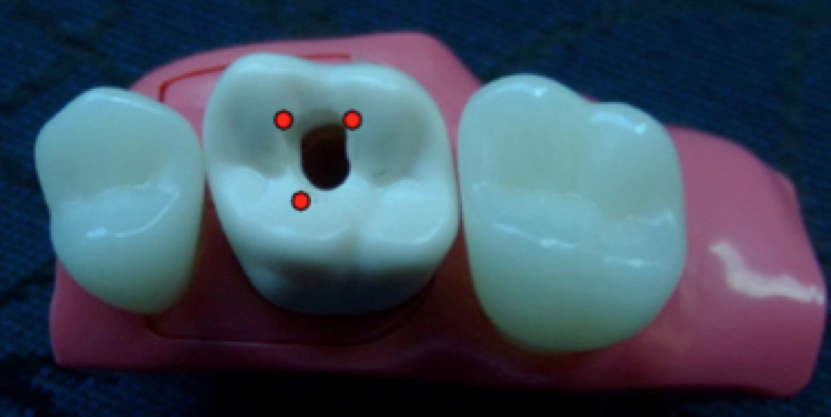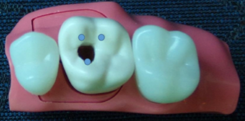 Connect the MB dot to the P dot-parallel the mesial proximal surface when connecting the dots